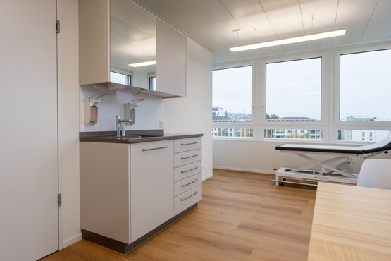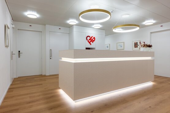 Wir erhielten den Auftrag, im 4. Obergeschoss die neue Praxis für Kardiologie zu gestalten und umzusetzen.